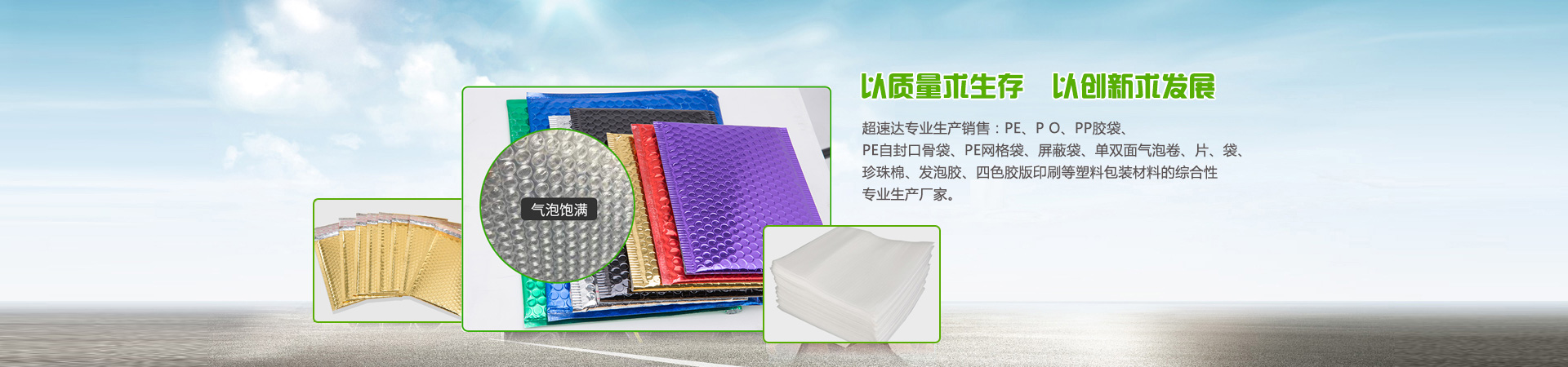 深圳市超速達塑料包裝有限公司成立于2006年10月,專業銷售環保氣泡袋、防靜電氣泡袋、共擠膜氣泡袋、鍍鋁膜氣泡袋、PE防靜電膠袋、防靜電鋁箔袋、POF熱縮膜袋、PE自封骨袋、CPE磨砂袋、PE膠袋、復合袋、PE尼龍真空袋、防靜電屏蔽袋、氣泡膜等產品綜合性生產廠家,業務涉及深圳、廣州、東莞、佛山、中山、惠州、珠海等地區。所有制造產品均符合環保標準(歐盟ROHS等),綜合實力在同行業中處于領先水平。公司2006年獲得增值稅一般納稅人資格,2010年通過ISO9000:2008質量體系認證,2014年通過安全證書認可。